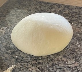 The protein components and the gluten are now elastic fibers that allow the dough to stretch without breaking. When you cut the dough, it severs the elastic gluten fibers. Try not to cut or break the dough more than necessary. Give each dough ball a couple of stretches, fold and turn, recreating a ball. The dough should not break as it stretches, we want that gluten to work; it should be elastic and stretchy. If it does break, allow it to sit, lightly covered with a tea towel to let the gluten develop. After 5-10 minutes, work the dough ball again; it should be round and smooth. Tuck and close the ends of the dough on the bottom of the ball. Let the happy ball sit on the counter for a few minutes to relax.
