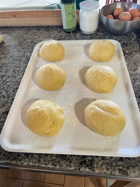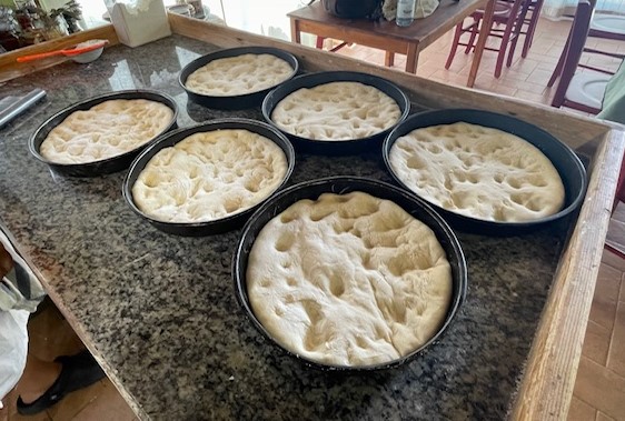 During our nine weeks working in Chef Lorenzo Polegri’s kitchen in central Italy, we made several staple dishes almost every day. For Mike, those dishes included pasta sauce, beef and pork stews, and roasted vegetables. For Caren, her daily responsibilities included salads, pizza, and focaccia (foe-ka-cha). Her bread dough creations in the antipasti were the foundation and set the tone for the entire four-course meal.