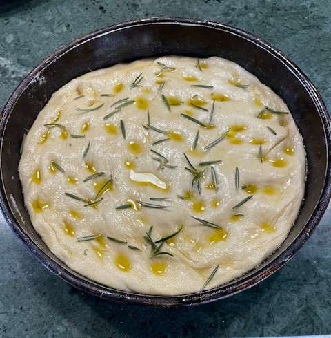 Don’t overdo the amount of flavors – since you are using fresh delicious ingredients, the focaccia should be about tasting that flavor. Simple is good. My favorite is rosemary and sea salt. Let the dough rise again before pushing it down with your five stiff finger hammer and generously drizzle your olive oil on the top so that those dimples collect puddles of olive oil. Can there be too much olive oil?